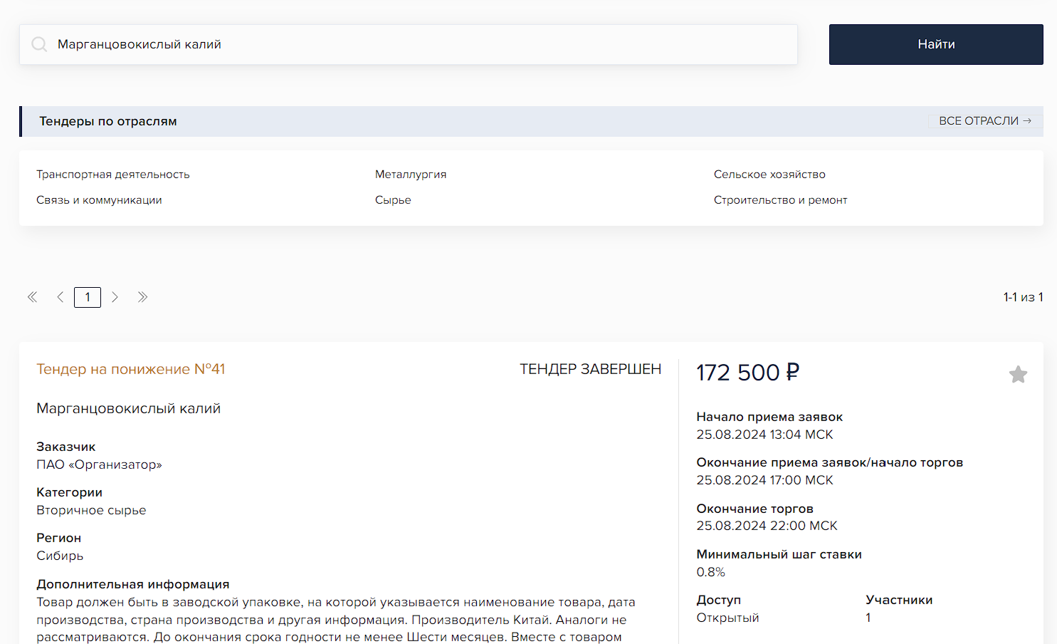 - Участник тендеров из надёжной организации (потенциальный участник),