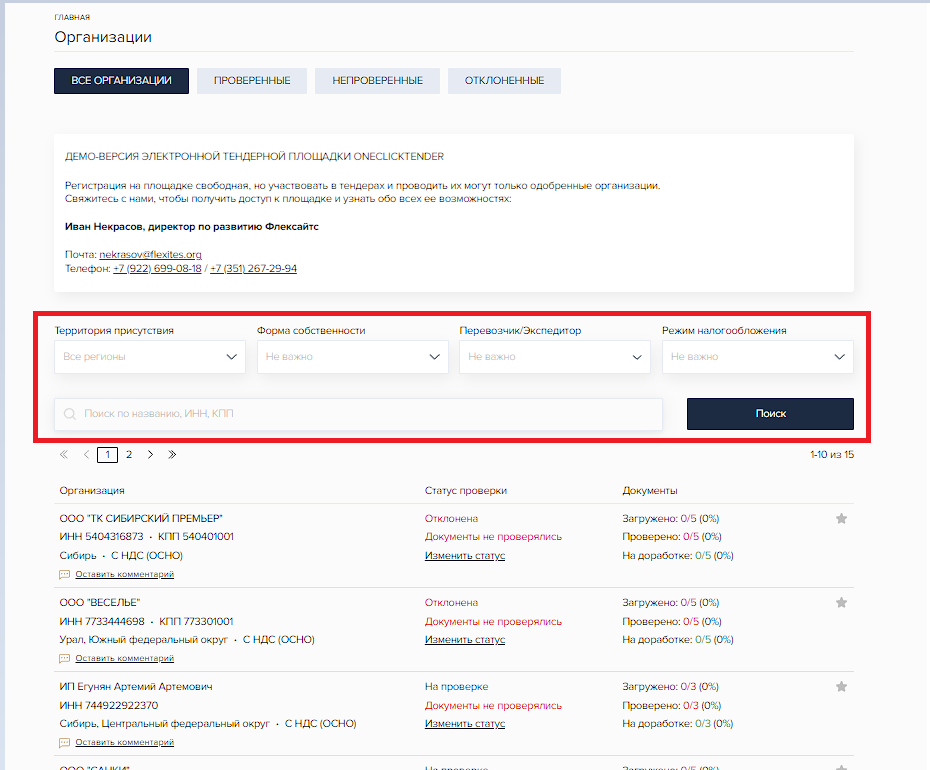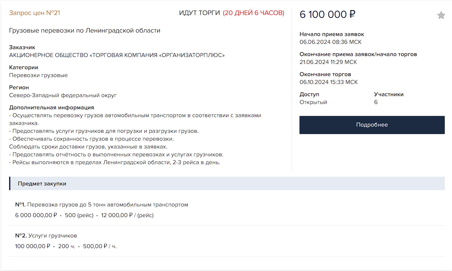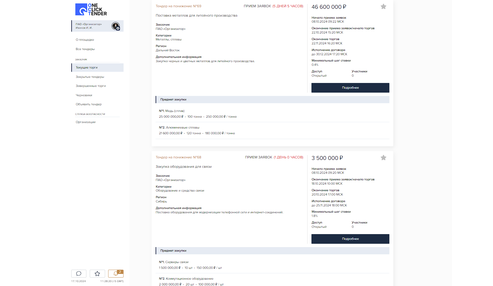 - Каталог тендеров с подборками для поставщиков и организаторов.