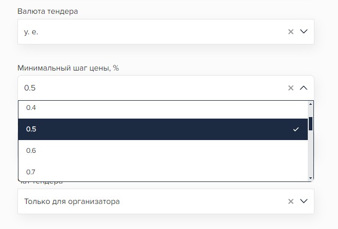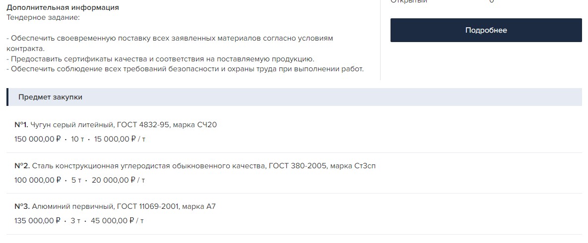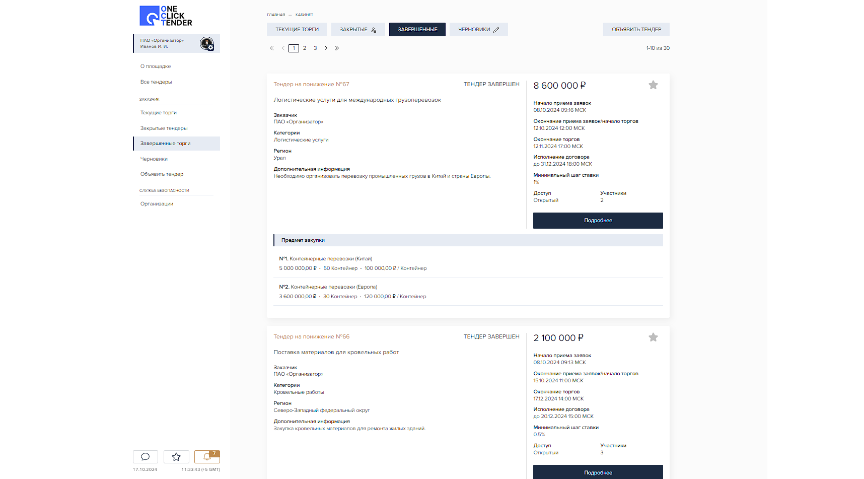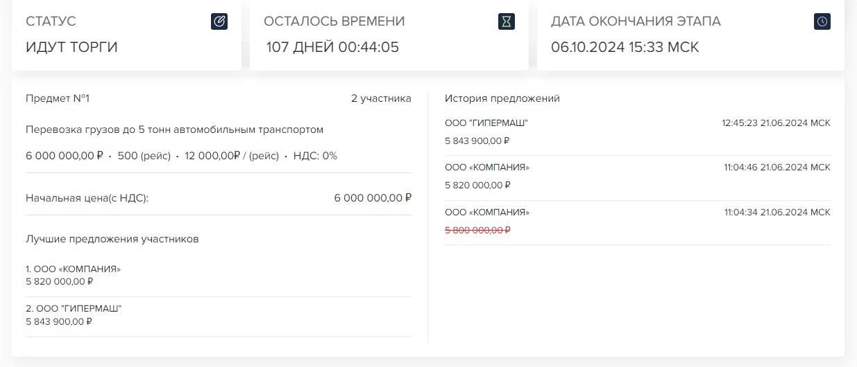- Этапы тендеров: подача заявок, этап торгов, определение победителя, подведение итогов.